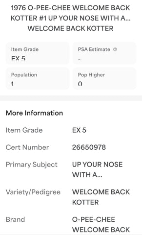 1976 O-PEE-CHEE WELCOME BACK KOTTER #1 UP YOUR NOSE WITH A... WELCOME BACK KOTTER